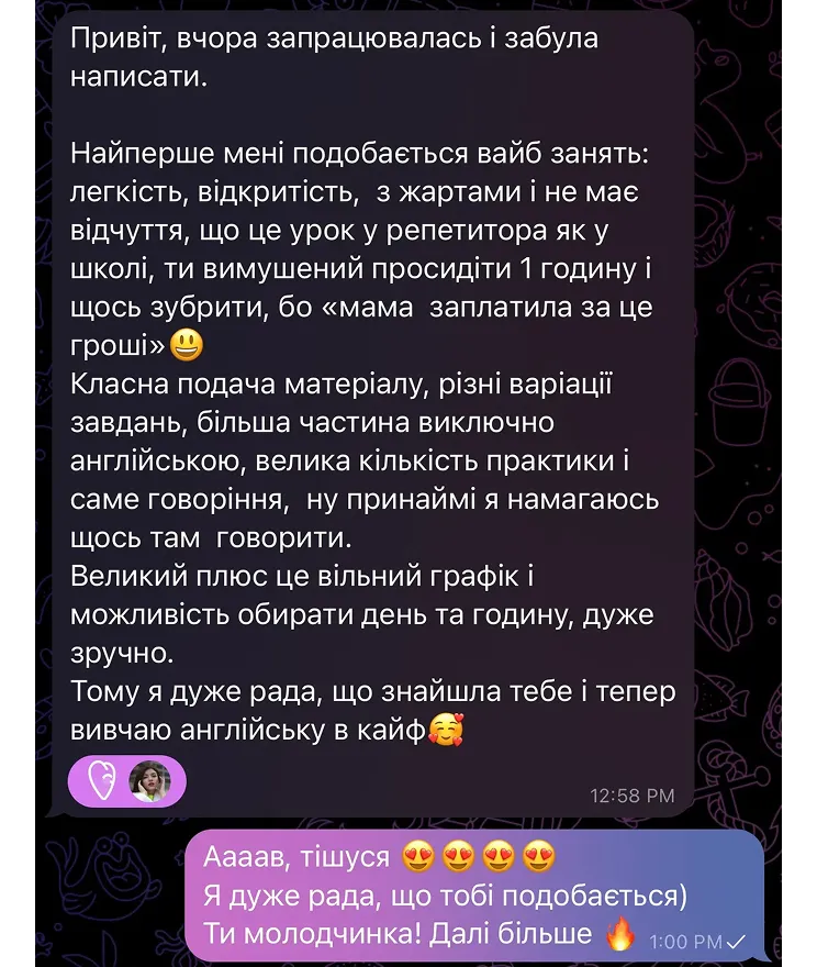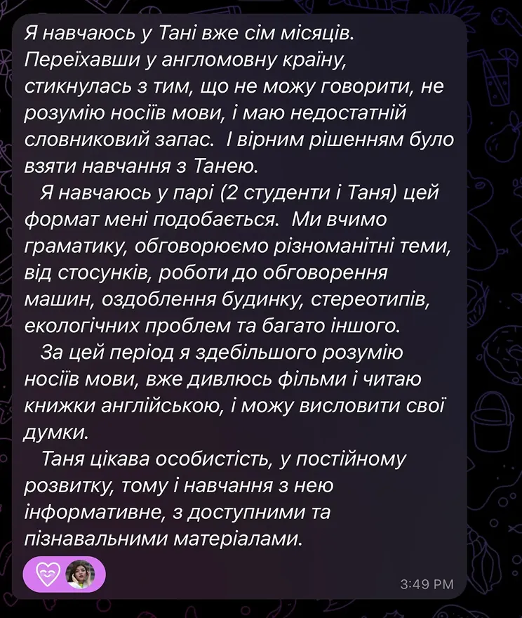 Сьогодні я передаю досвід реальної адаптації, завдяки якому мої студенти не просто вивчають англійську, а починають жити нею.